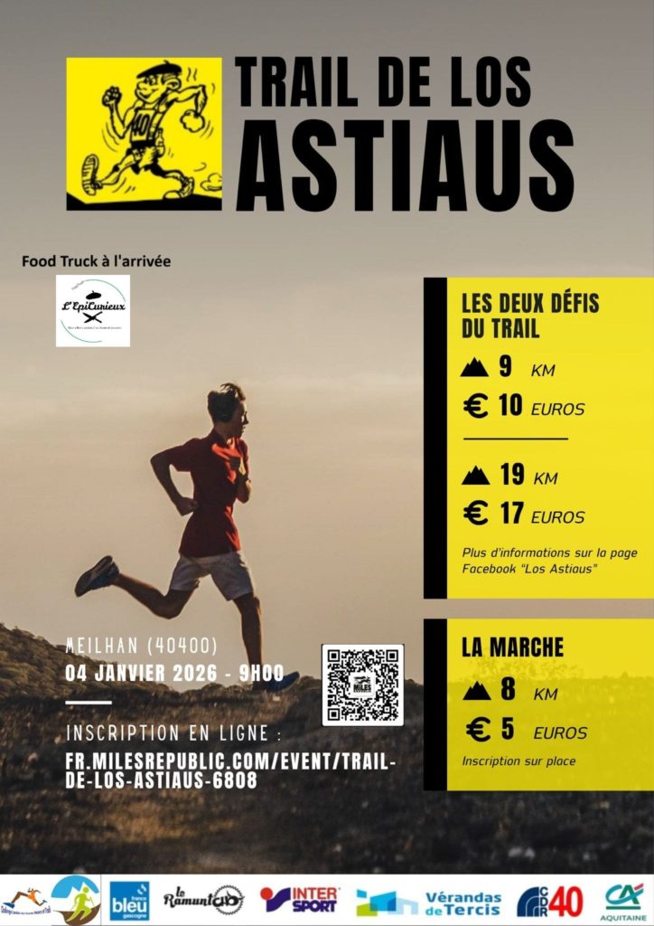 Trail de los Astiaus - 4 janvier 2026 Burck and Run de Mérignac - 18 janvier 2026 Trail de la Chandeleur - Saint-Sever - 1er février 2026 Triathlon du Moun - 28 juin 2026